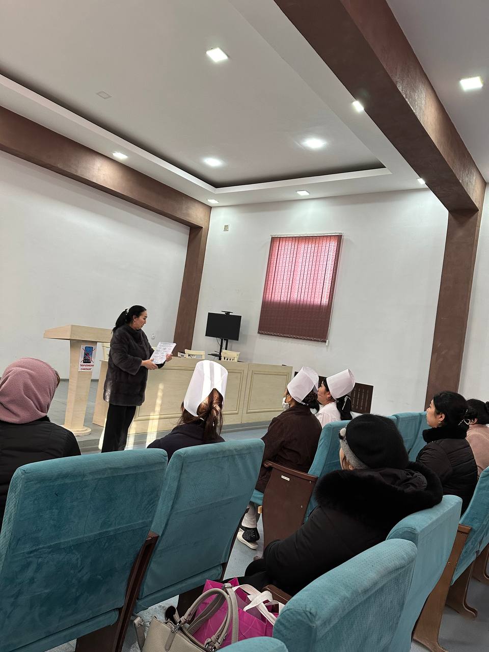 23.02.2024-й. Нукус тумани – куратори Г.С.Джугинисова Узбекистон Республикаси Президентининг ПК-102-сонли карори ижроси доирасидаги навбатдагт тадбирлар Кораколпогистон республикаси  Академик Е.Х.Туракулов номидаги РИЭИАТМ Нукус филиали шифокори Г.С.Джугинисова 58 нафар оилавий шифокорлар ва патронаж хамширалар учун “Кандли диабет миллий мактаби” дастури асосида  семинар тренинг ташкил этилди! Семинарда Кандли диабетни эрта аниклаш тартиби,тугри овкатланиш ва жисмоний фаолликни янада ривожлантириш…