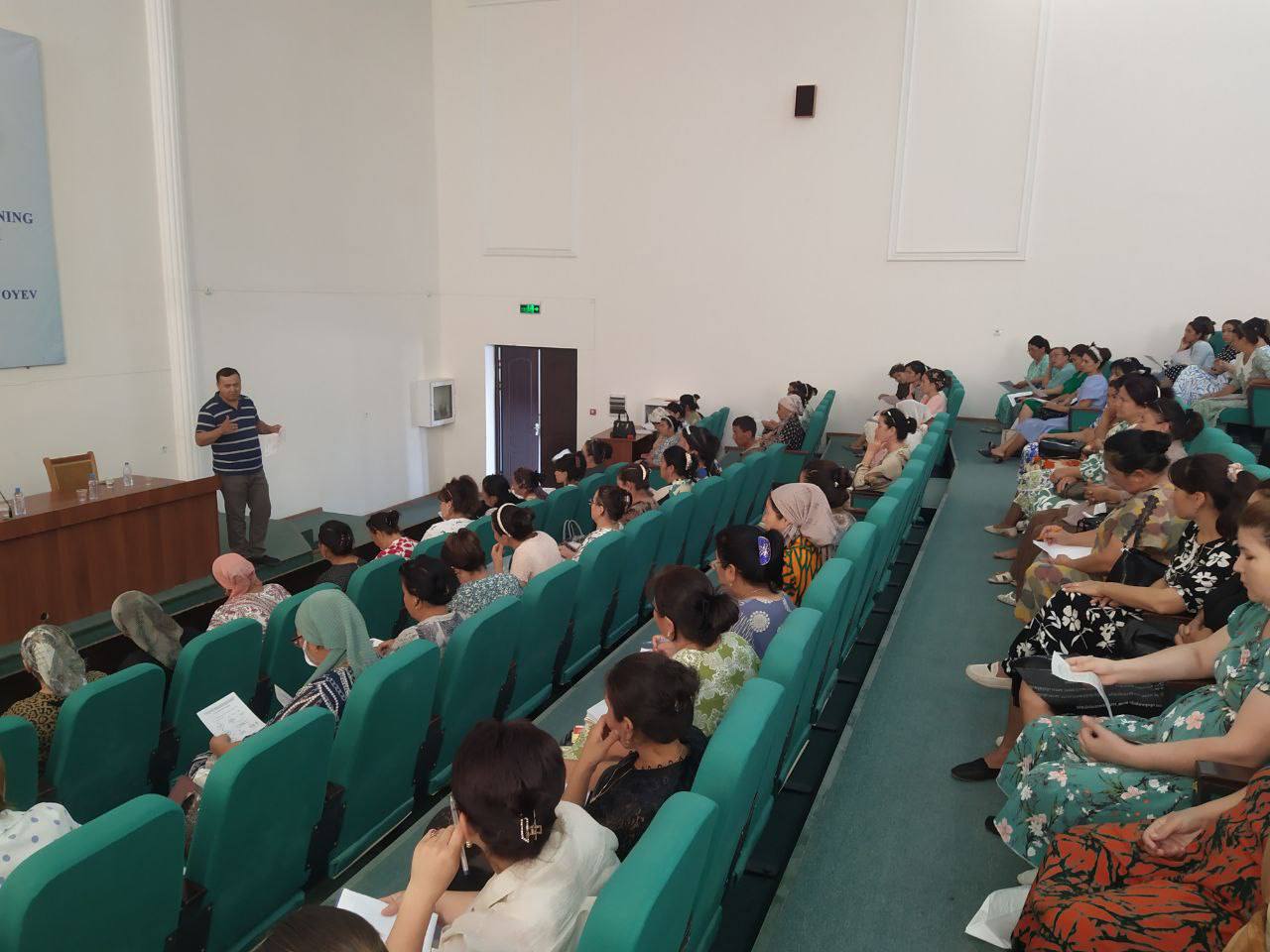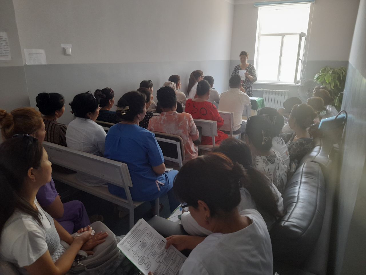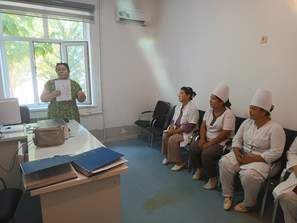 Извините, этот текст доступен только на “Uzbek”. Академик Я.Х.Тўрақулов номидаги Республикa ихтисослаштирилган илмий-aмaлий тиббиёт эндокринология мaркaзи ҚР филиали мутахассиси Г.Гаипова томонидан Ўзбекистон Республикаси Президентининг 26.01.2022-йилдаги “Эндокринология хизматини такомиллаштириш ва кўламини кенгайтириш чора-тадбирлари тўғрисида”ги ПҚ-102-сон қарорининг талаблари ижроси бўйича Хўжайли туманида оилавий шифокорлари хамда патронаж хамшираларига  40 ёшдан ошган ахоли ўртасида “Қандли диабет” касаллиги скрининги ўтказиш…