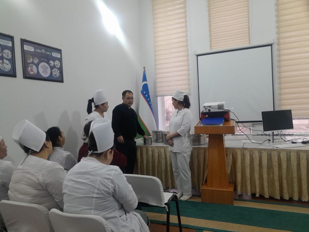 Akademik Yo.X.Turakulov atındaǵı Respublika qaniygelestirilgen endokrinologiya ilimiy ámeliy medicina orayınıń medicina xızmetkerlerin asa qáwipli kesellikler profilaktikası boyınsha oqıtıw haqqındaǵı 310 sanlı buyrıǵı boyınsha Oba keselligine qarsı guresiw orayı KK filialı shıpakeri A.Ishmuratov, Nókis kanalı SETxJSB shıpakeri V.Abdixayrova, RBJK shıpakeri A.Sisenovalar tárepinen