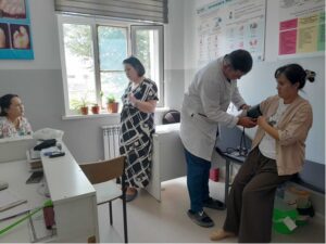 Qoraqalpog’iston Respublikasi sog’liqni saqlash vazirining 2025 yil 24 apreldagi 97-sonli buyrug’iga asoslanib “Sog’lomlashtirish oyligi” doirasida Respublika ishchi guruhlari tomonidan Kambag’al oilalar reestrida turgan aholi tibbiy ko’rikdan o’tkazilmoqda. 2025-yil 10-iyun kuni RIEIATM QR filiali endokrinolog vrachi G.Gaipova tomonidan Mo’ynoq tumani tibbiyot birlashmasiga qarashli KTMP da aholi tibbiy ko’rikdan va skrining tekshiruvlaridan o’tkazilmoqda. Tibbiy ko’rik natijasida 12 ta aholidan 1 ta diabet oldi holati, 5 ta qalqonsimon bez kasalliklari aniqlandi, 4 ta qandli diabet bemorlari ko’rikdan o’tkazildi va 1 ta bemor statsionarga davolanishga yuborildi. Aholiga sog’lom turmush tarzi, sog’lom ovqatlanish va jismoniy faollikka rioya etish xaqida tushunchalar berilmoqda.